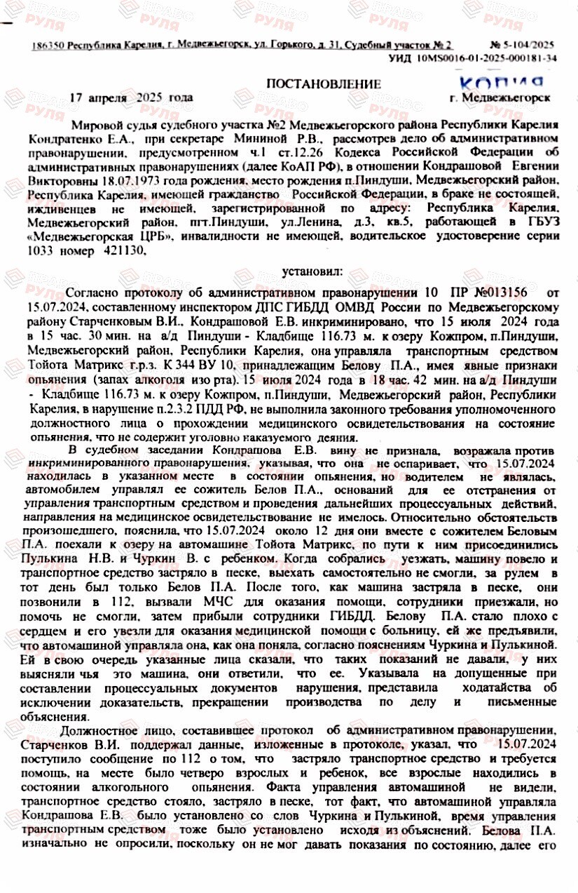 Клиент обратился 16 ноября 2023 года в юридическую компанию Право Руля в день совершения правонарушения. Юристом был подготовлен правовой анализ и найдены грубые нарушения в процедуре. При проведении процедуры отстранения не участвовали понятые и не проводилась видеофиксация. В связи с данным нарушением не был установлен субъект данного правонарушения, что необходимо для определения состава. Подробнее: в тексте решения.
